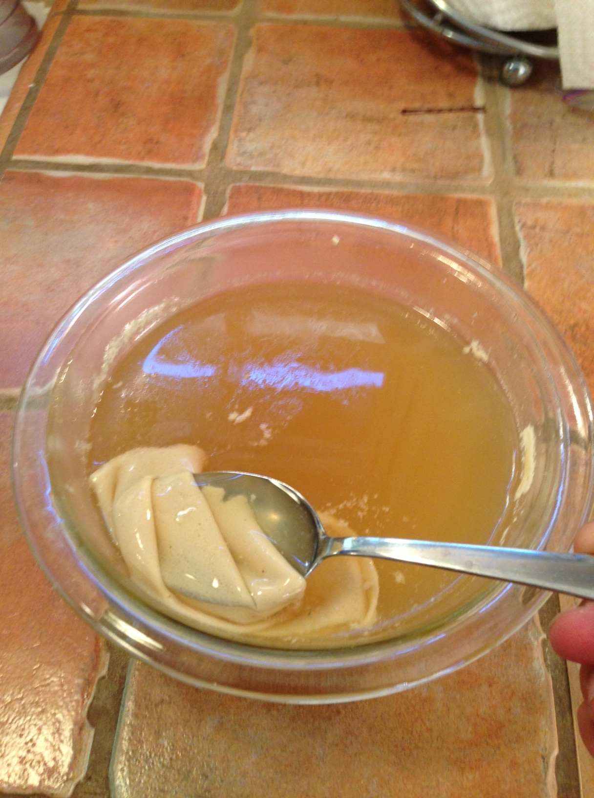 This time I had enough broth to fill one large glass bowl: